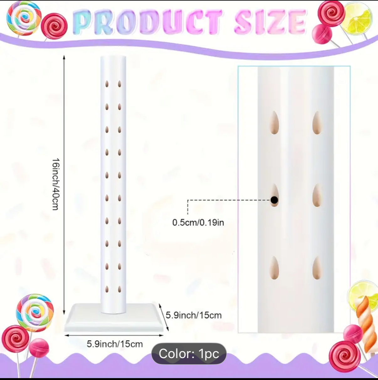 średnica otworu na lizaka- 0,5 cm