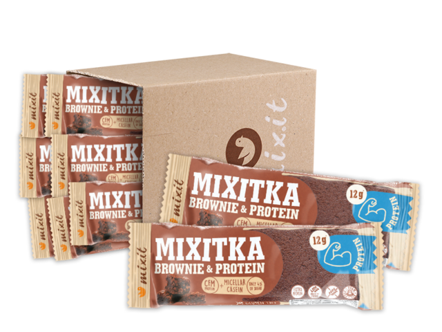 Oto Mixitka napakowana proteinami o smaku czekoladowego ciasta “Brownie”. Bezglutenową recepturę rozwijaliśmy dla wszystkich, którzy poszukują porządnej porcji białka (12 g w każdym batoniku) z minimalną zawartością cukru i z maksymalnymi doznaniami smakowymi. Proteinowy wkład zawiera wysokiej jakości koncentrat serwatki opracowanej metodą CFM oraz micelarną kazeinę, która pomału uwalnia proteiny i nasyci na dłuższy czas. Wyraźny kakaowy smak podkreślą ziarna kakaowca, kakao, cukier kokosowy i masło orzechowe. Każda Mixitka zapewni wam dodatkowo wysoką porcję błonnika dla zdrowego samopoczucia. Świetne jako przekąska, po treningu a także wspaniale wejdzie do torby do pracy czy plecaka na wycieczkę 🙂