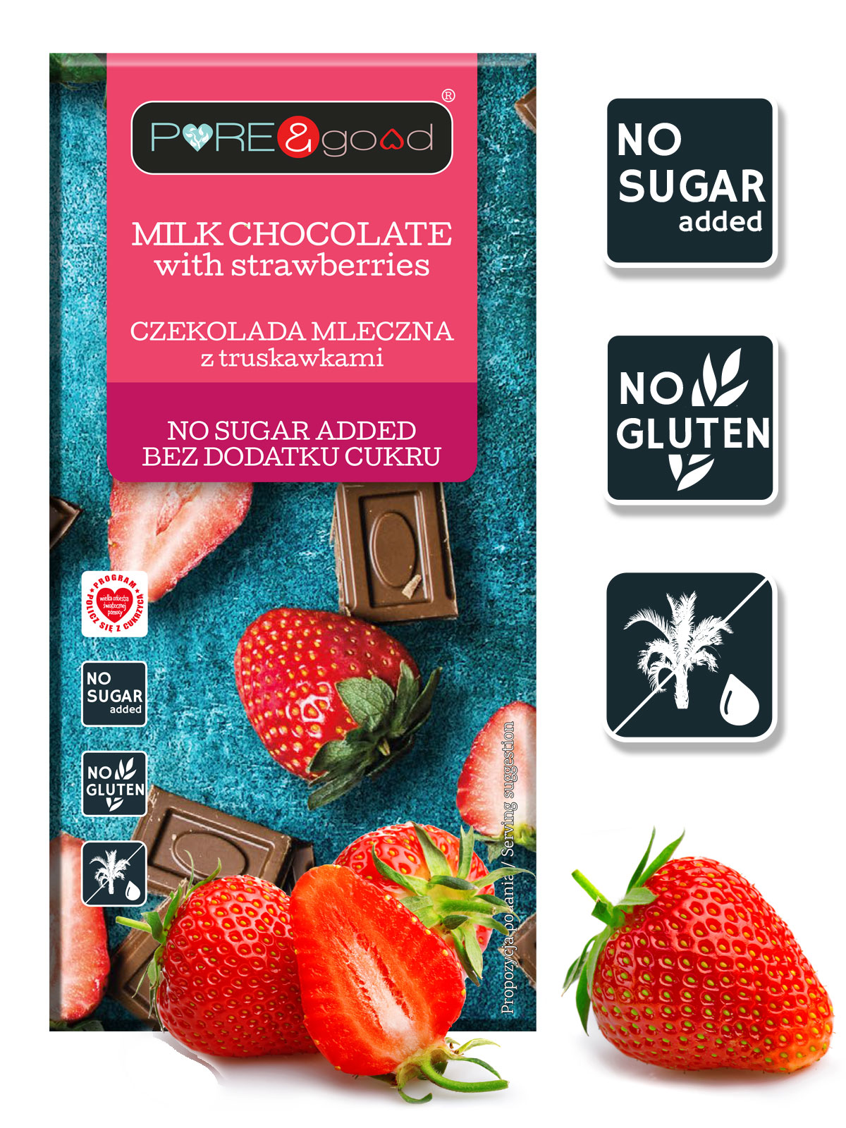 Czekolada mleczna z truskawkami bez dodatku cukru, 75g