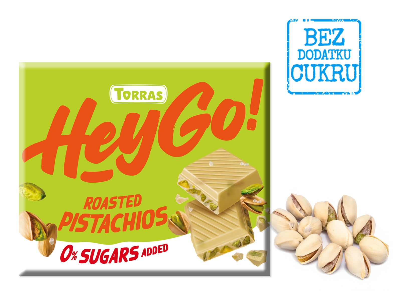 Czekolada biała z prażonymi pistacjami BEZ CUKRU 60g Torras Hey GO