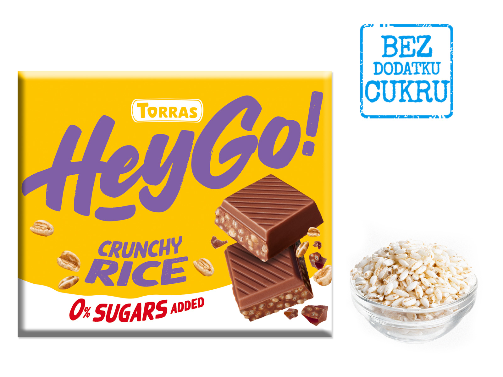 Czekolada mleczna crunchy z chrupiącym ryżem BEZ CUKRU 60g Torras Hey GO